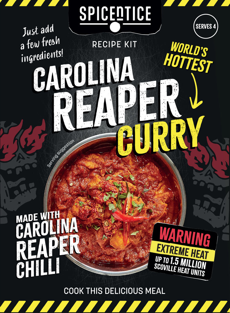 1 x Carolina Reaper Curry Kit – the scariest of them all – made with the World Hottest Chilli - Carolina Reaper Chilli measures a staggering 1.5 million scoville units.