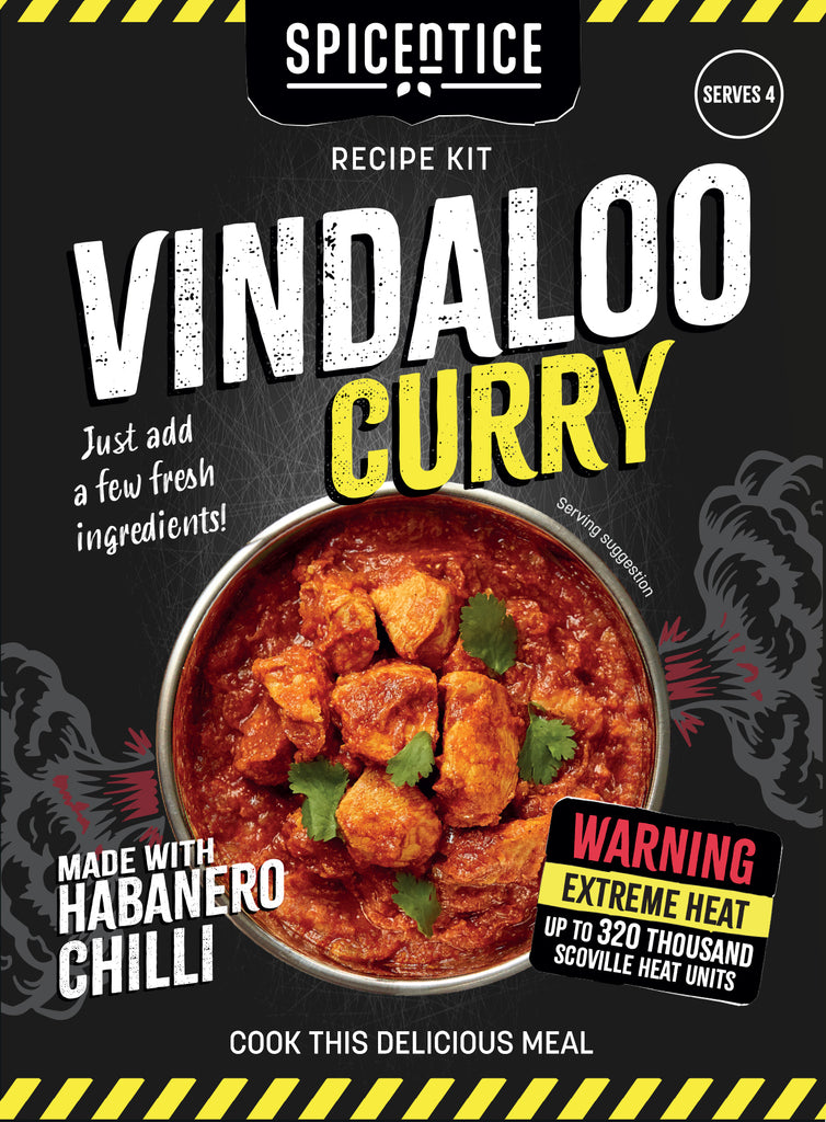 1 x Vindaloo Curry Kit – the tamest of the trio and the British hot heads favourite, made with fiery Habanero Chillies, that sit at 350,000 on the scoville scale.